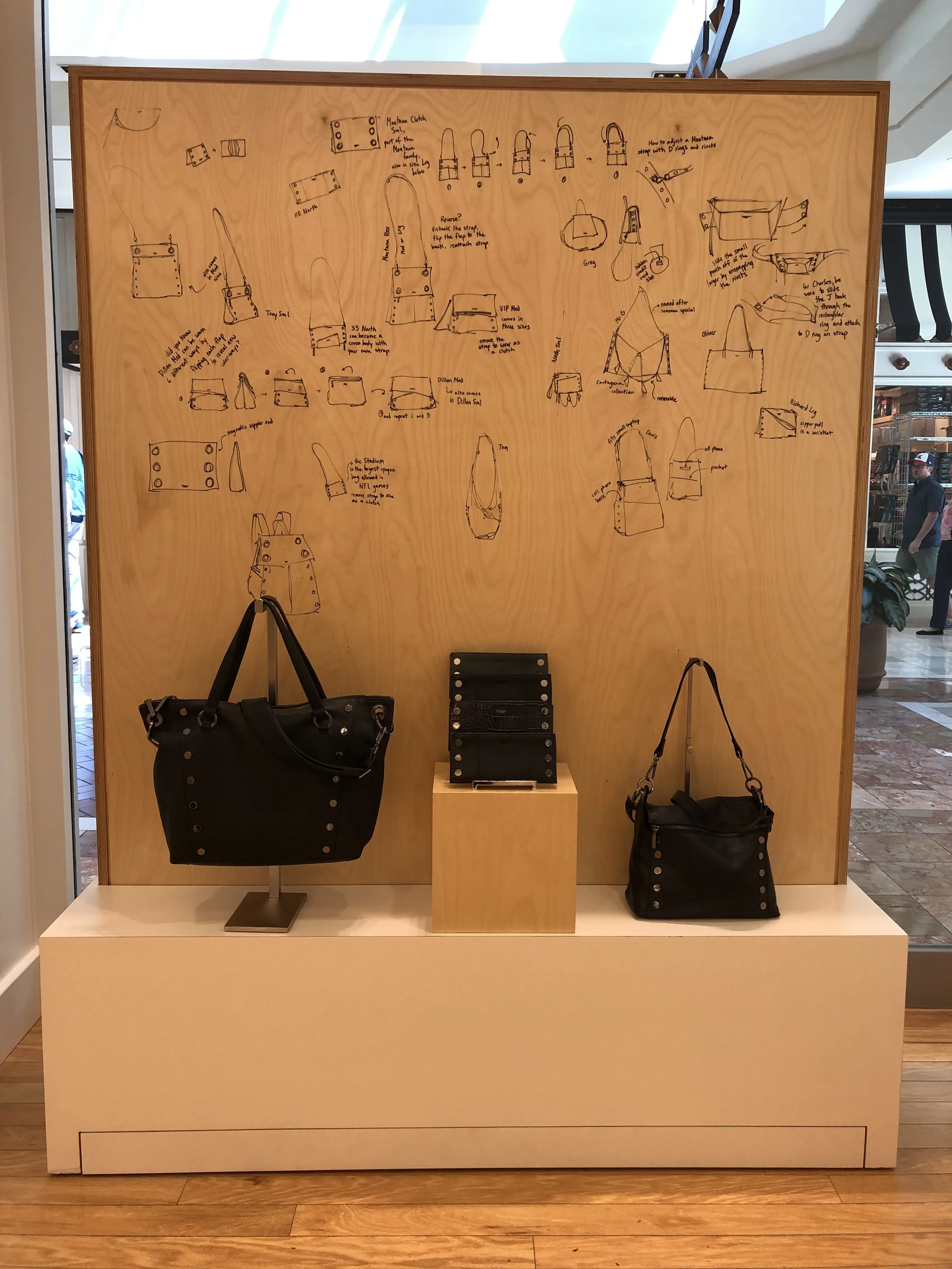 Located in the South Coast Plaza mall in Costa Mesa, California, KOR Services worked closely with Hammitt Handbags LA to design and produce a retail display system for what was intended to be a 6 month pop up.