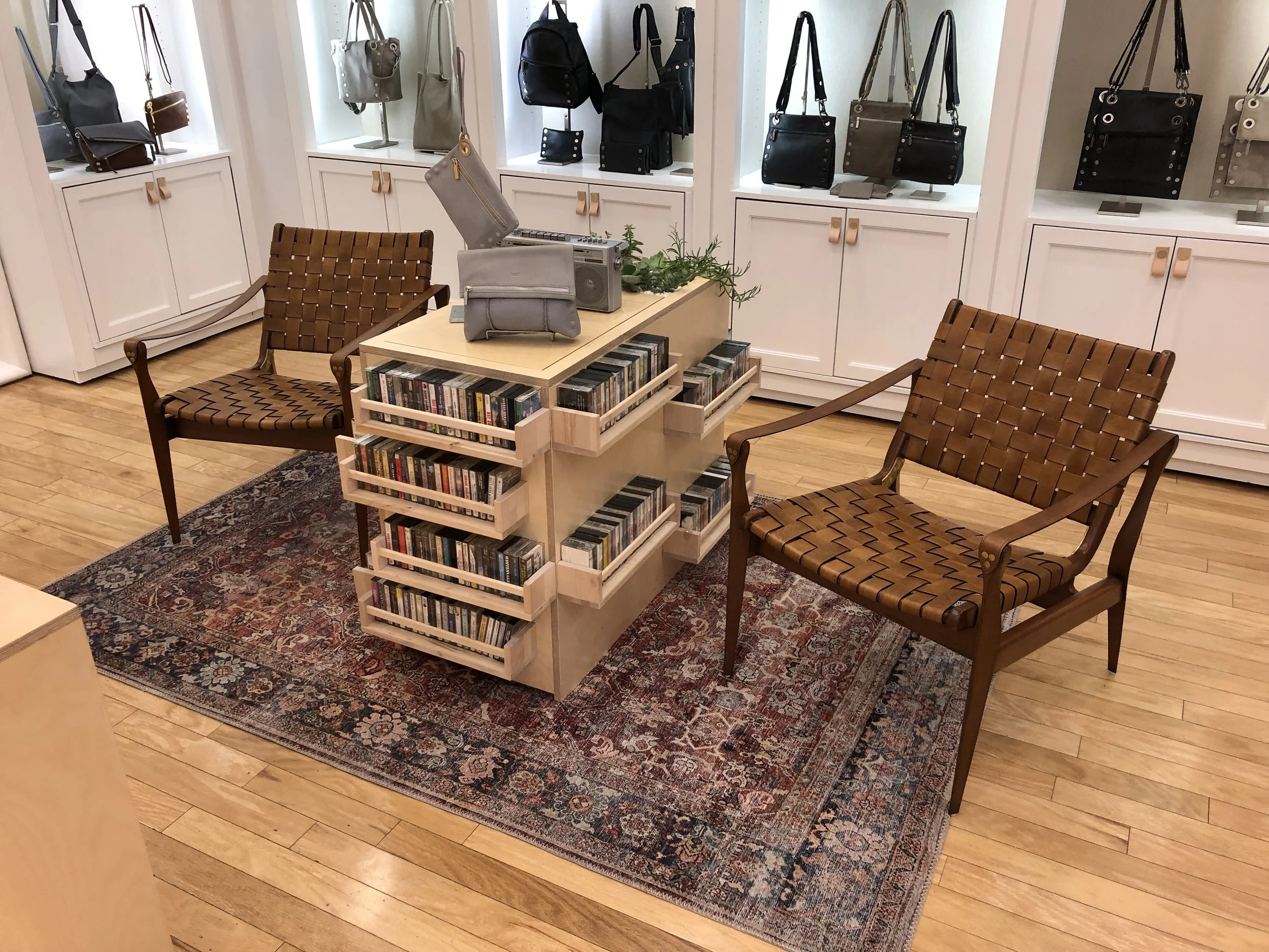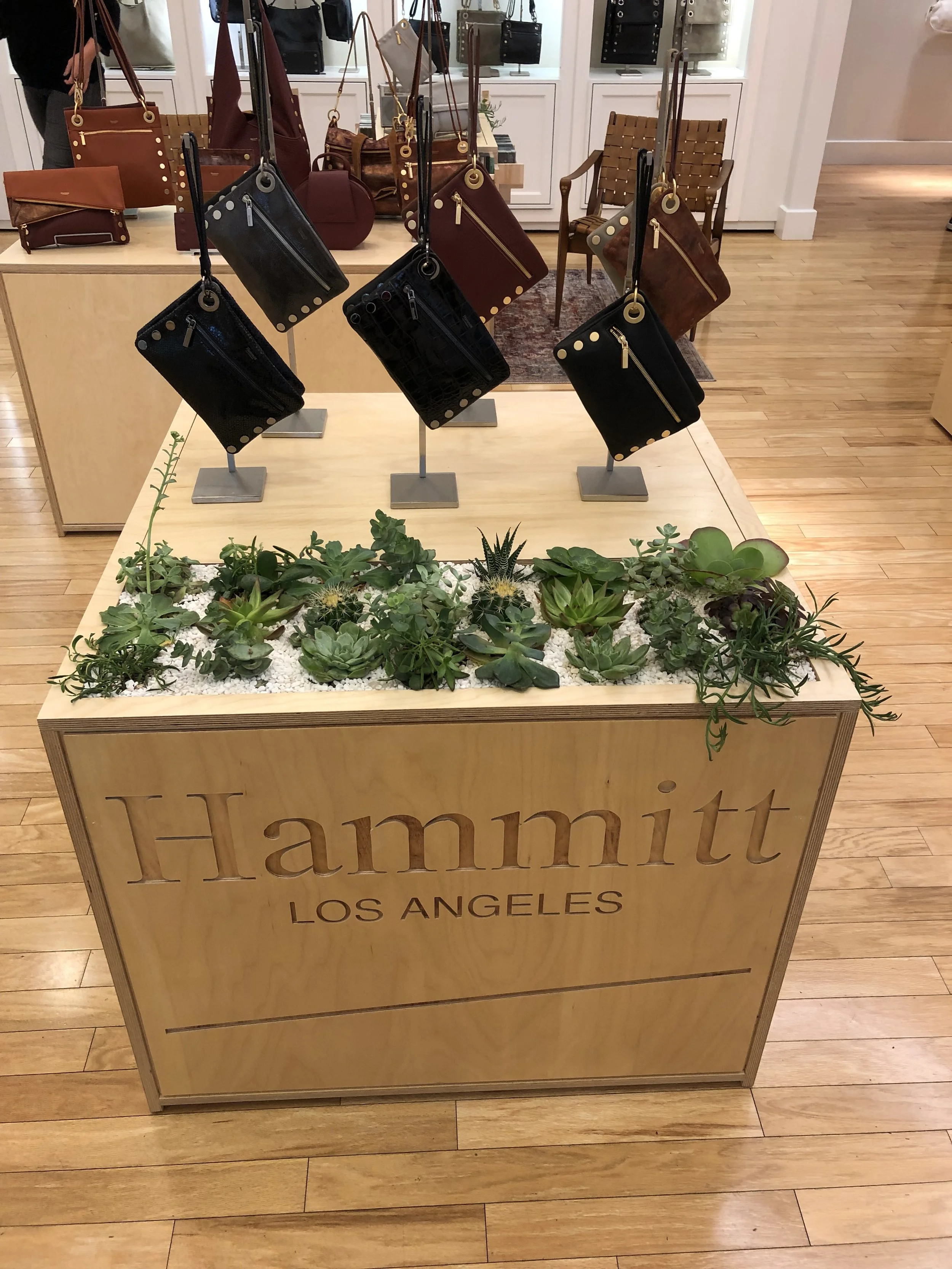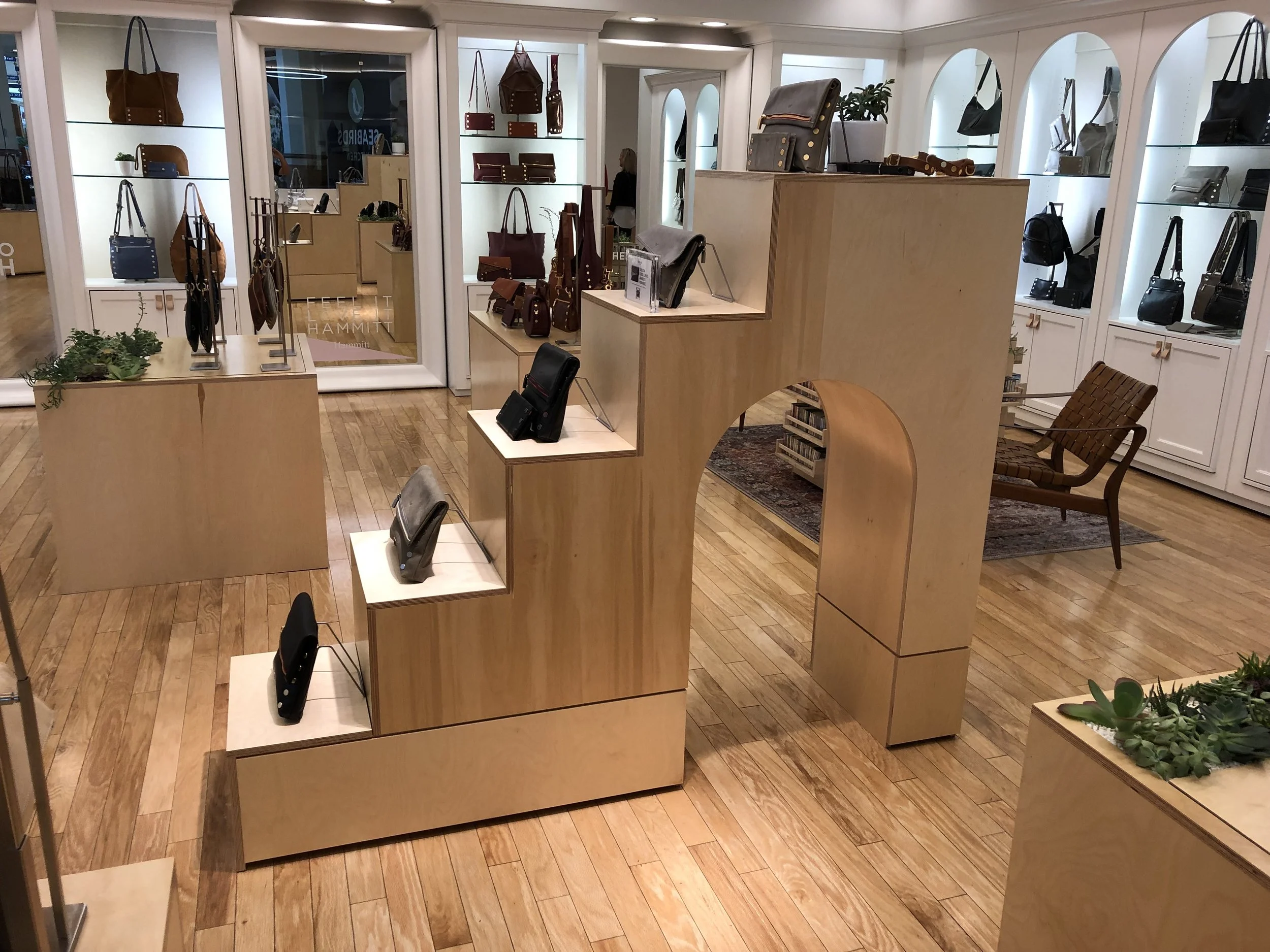 KOR assisted with fixture design and production, experiential display components, architectural and interior design. We created a modular system that allows for the clean and simple display of the beautiful Hammitt line of products. Hammitt has since remained in this space and KOR Services LLC has designed and produced a series of seasonal and experiential retail displays for the handbag store.